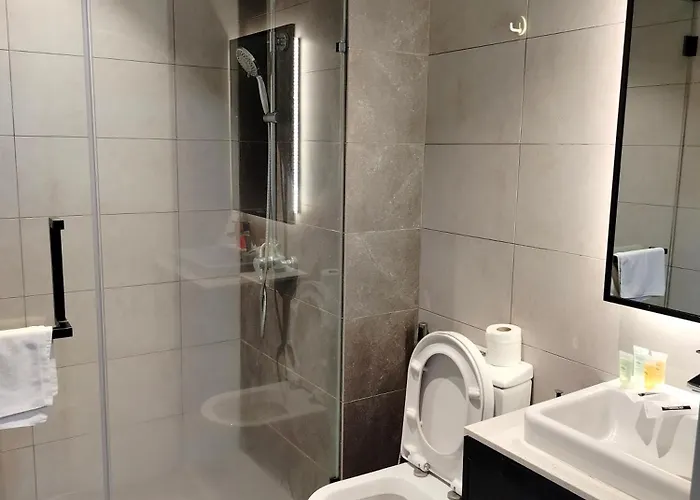 The apartment overlooks the city and comprises a patio and a fully equipped kitchen with an air conditioner and a washing machine. At The Axon Suites By Skyscraper, a bidet, a separate toilet, and a shower are provided to improve your comfort. Toiletries and towels can also be found.